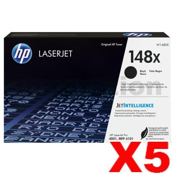 5 x HP 148X W1480X Genuine Black High Yield Toner Cartridge – 9,500 Pages