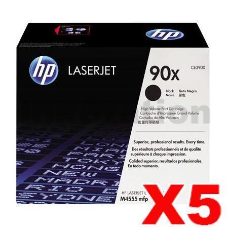 5 x HP CE390X (90X) Genuine Black High Yield Toner Cartridge – 24,000 Pages