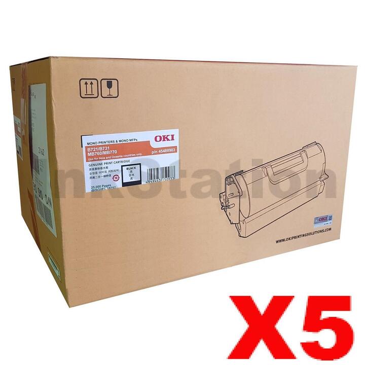 5 x OKI Genuine B721 B731 MB760 MB770 Black Toner Cartridge – 25,000 pages (45488903)