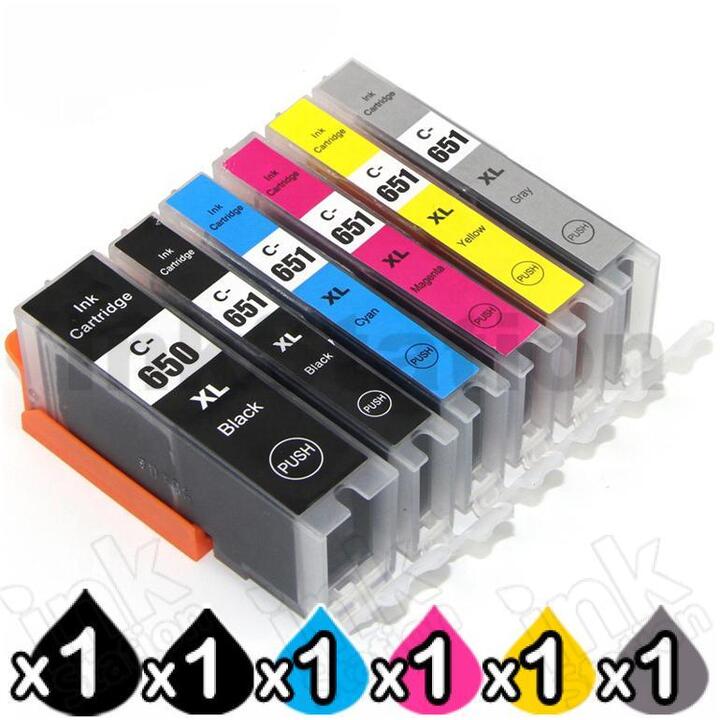 6 Pack Canon PGI-650XL CLI-651XL Compatible High Yield Inkjet Cartridges [1BK,1PBK,1C,1M,1Y,1GY]