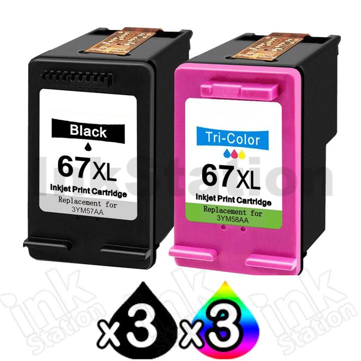 6 Pack HP 67XL Compatible High Yield Inkjet Cartridges 3YM57AA + 3YM58AA [3BK,3CL]