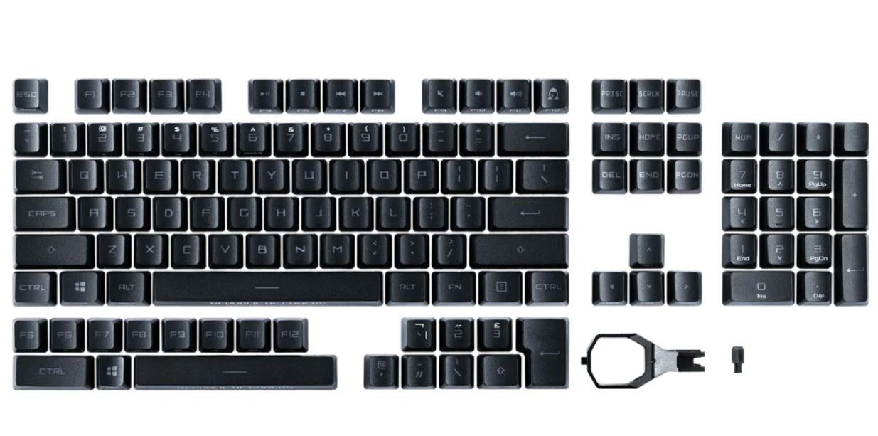 The ROG PBT Doubleshot Keycap Set for ROG RX Switches offers gamers premium, durable PBT material keycaps for ROG RX Optical Mechanical Switches, providing longer lifespan and better keystroke feel.