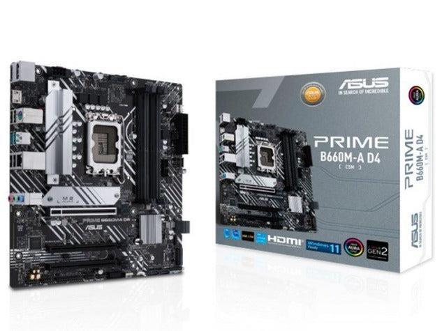 ASUS PRIME B660M-A D4-CSM mATX Motherboard, 4x DDR4, 1x PCI-E 4.0, 2x PCI-E 3.0, 2x M.2, 4x SATA3, DisplayPort 1.4, 2x HDMI 2.1