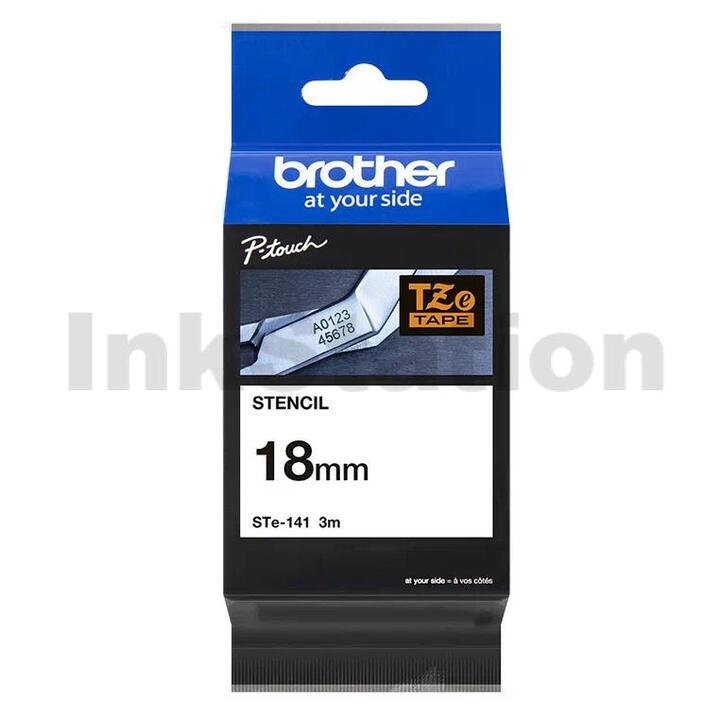 Brother STe-141 Genuine 18mm Black Text on Clear Stencil Tape – 3 metres