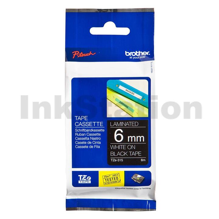 Brother TZe-315 Genuine 6mm White Text on Black Laminated Tape – 8 meters