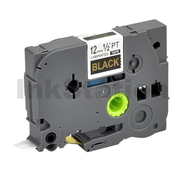 Brother TZe-334 Compatible 12mm Gold Text on Black Laminated Tape – 8 meters
