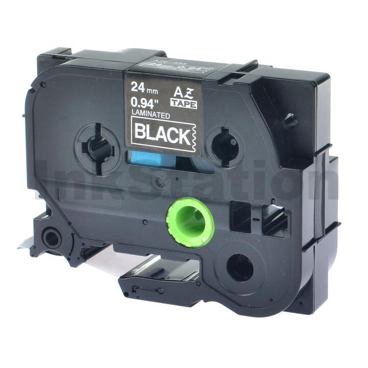 Brother TZe-355 Compatible 24mm White Text on Black Laminated Tape – 8 metres