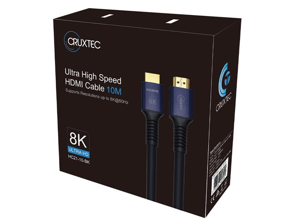 Cruxtec HC21-10-BK HDMI 2.1 8K with Ethernet Male to Male Cable 10m Black, supports 8K@60Hz- 4K@120Hz