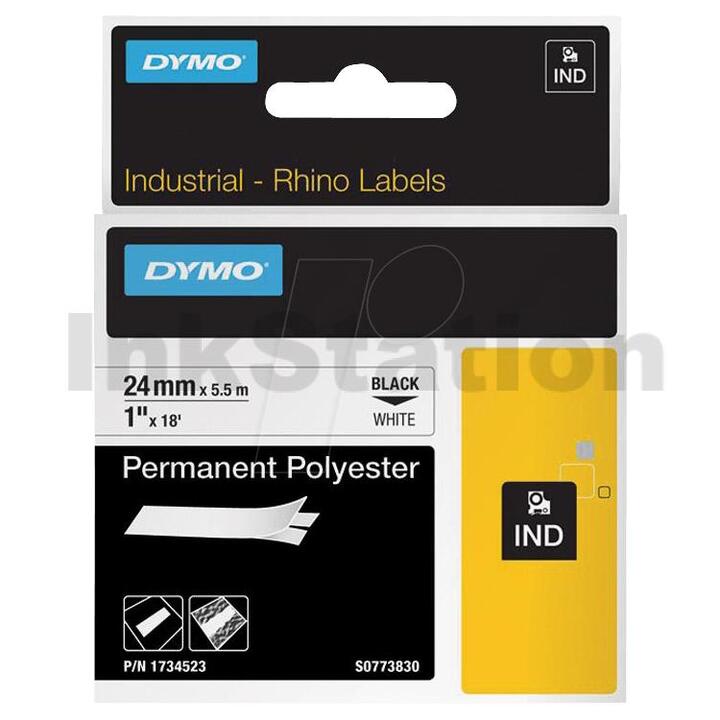 Dymo 1734523 Genuine 24mm Black Text on White Permanent Polyester Industrial Rhino Label Cassette – 5.5 meters