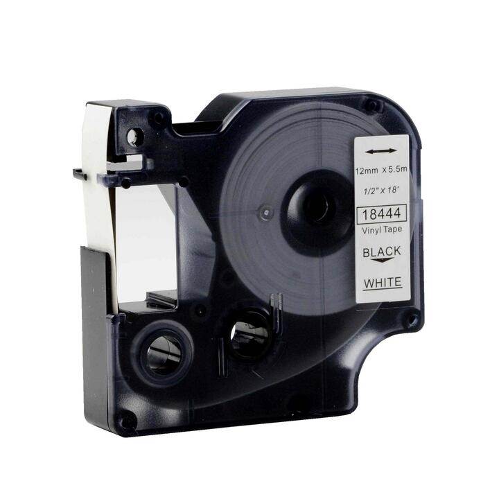Dymo SD18444 Compatible 12mm Black Text on White Vinyl Industrial Rhino Label Cassette – 5.5 meters