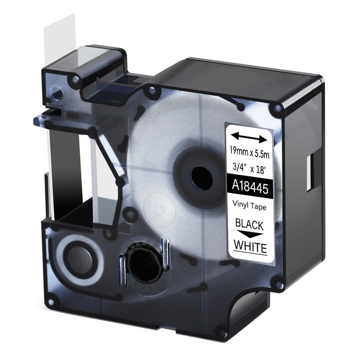 Dymo SD18445 Compatible 19mm Black Text on White Vinyl Industrial Rhino Label Cassette – 5.5 meters