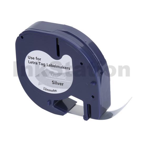 Dymo SD91208 / 91338 Compatible 12mm x 4m Black On Silver LetraTag Metallic Tape