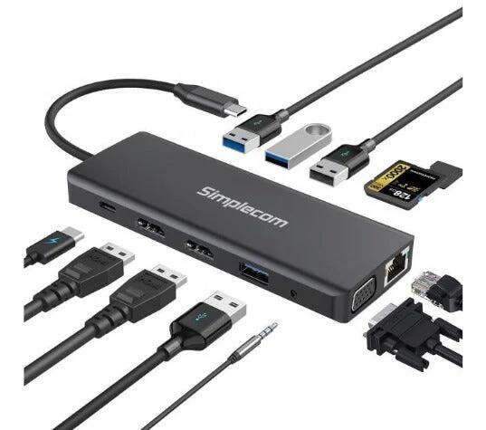 Simplecom CHN612 USB-C 12-in-1 Multiport Dual HDMI+VGA Triple Display Docking Station