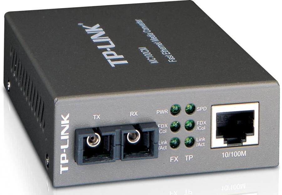 TP-Link MC100CM 10/100Mbps RJ45 to 100Mbps multi-mode SC fiber Converter, Full-duplex, up to 2Km, switching power adapter, chassis TL-MC1400 rack-mountable